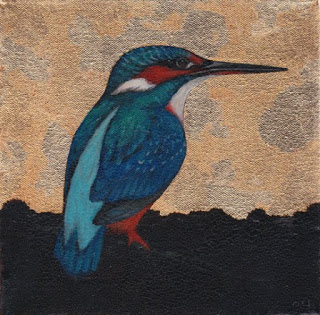Continuing with the work I’ve been at over the last while, here’s another of my favourite birds. This one is ‘Halcyon III’. Gilded Acrylics on canvas. 8″ x 8″.