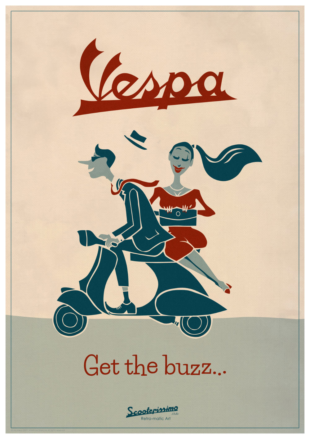 Here are designs and illustrations all about one of my chief enthusiasms; retro Italian scooter design and modernism. They're all produced from digitally as vector files in Affinity Designer. All are A2 in size. Scroll down further to buy directly from this site.